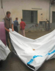 16. Ежедневно необходимо проверять рукава Murska Мурска. Если в течение первых недель в рукавах Murska Мурска накапливается давление и они вздуваются, надо сделать небольшой надрез и выпустить воздух. На разрез затем поставить заплту. Как можно быстрее надо заделывать все дыры, проделанные птицами и грызунами. Над рукавами Murska Мурска хорошо бы закрепить защитную сетку, которая предохранит от птиц. 17. Открывать рукава можно не раньше, чем через 3-4 недели, после того, как естественный процесс молочнокислого брожения остановился и кислотность зерна достаточно снизилась (рН 4 Из открытого рукава ежедневно необходимо брать слой зерна толщиной минимум 15-20 см, чтобы поверхность быстро обновлялась без соприкосновения с воздухом). | |